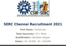 CSIR-Structural Engineering Research Centre recruitment 2021 - CSIR-Structural Engineering Research Centre (CSIR-SERC), Chennai is recruiting 07 no of candidates for their Technician vacancy...