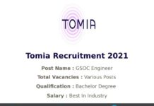 Tomia Recruitment 2022 | Various GSOC Engineer Jobs