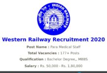 Western Railway Recruitment 2020 | 177 Para Medical Staff Jobs